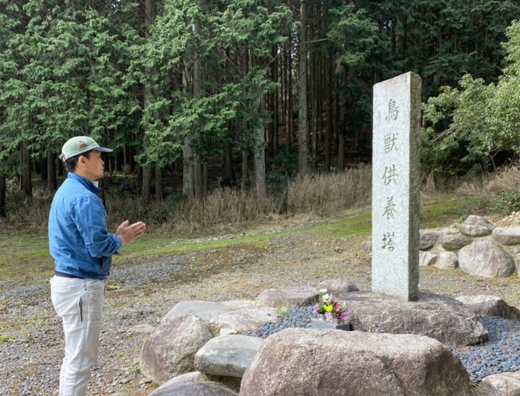 私は狩猟や有害鳥獣駆除活動で野生動物を捕獲した後、小岐須町と庄内町の堺にある鳥獣供養塔に必ず参拝しお線香をあげさせていただいています。