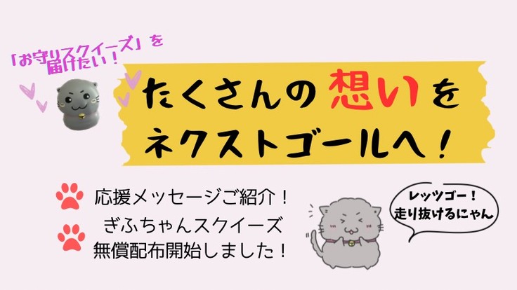 応募フォームのご応募分は、抽選でのお届けとなってしまうのですが、現在ページにも記載のある通り「ぎふちゃんお守りスクイーズ」の追加制作を行うためにネクストゴールに向けて取り組んでおります。