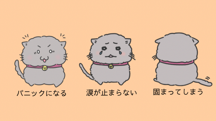 その恐怖から、時にはパニックになったり、暴れたり、その場で固まってしまったり…というような、一人ひとり違ったいろいろな症状の出方をします。