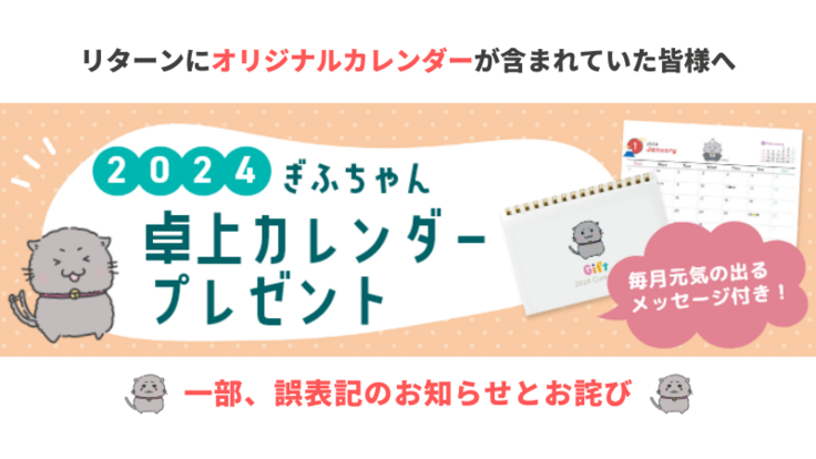 【リターン品】2024年ぎふちゃんカレンダー一部誤表記のお知らせとお詫び