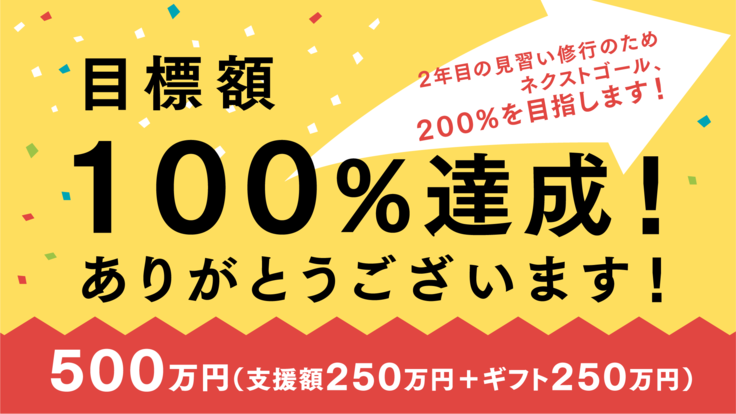 目標額達成!500万円(マッチングギフト含む)です!