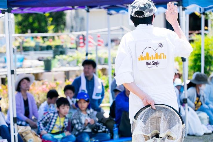 梅田ミツバチプロジェクトでは、養蜂場の特性を活かして小学生やシニア、企業向けのミツバチ学習会を開催しています。