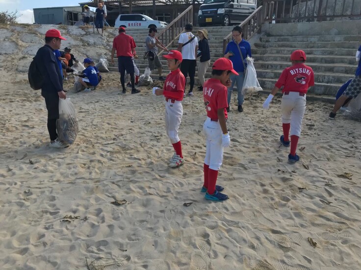 あの赤いエージェント。。。選手達が父母と一緒にビーチ清掃活動を行います!!