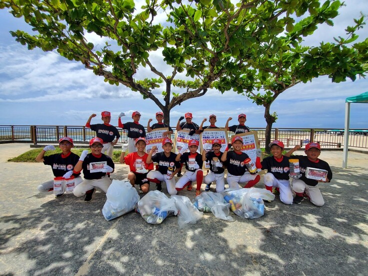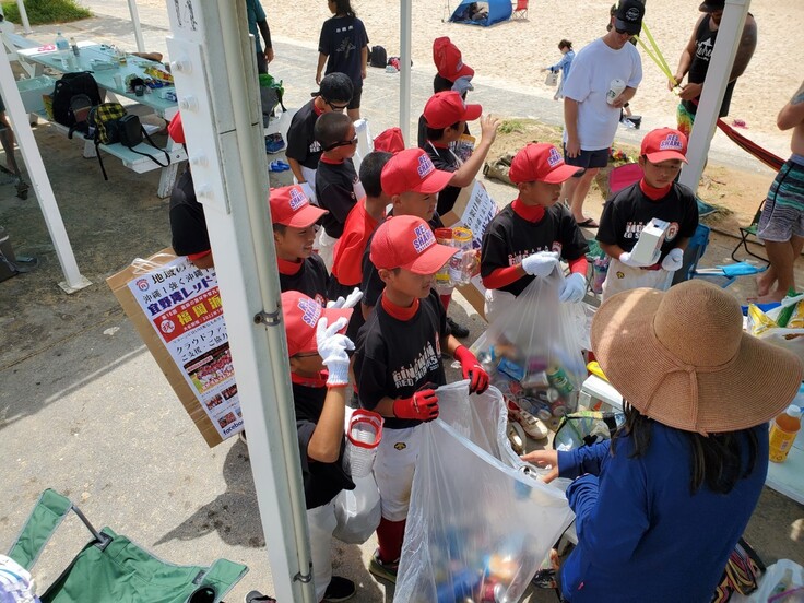 このプロジェクトで伝えてる「福岡遠征で優勝」、「地域に愛される沖縄1強く楽しいチーム」への挑戦を伝えながらクリーン活動をしていると賛同いただけた方々から、その場でご寄付をいただき、BBQをされてる方から空き缶も資金造成でいただき、子どもたちが元気に挨拶・お礼をすると、笑顔で応援の声をいただきました!