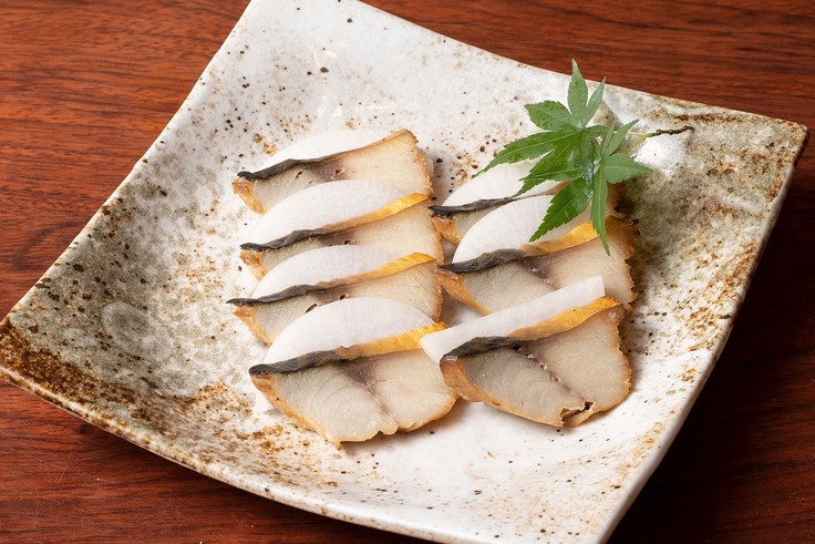 非常に上品な味わいと言われており、名高いブランド鯖「金華サバ」その中でも特に上質なサバを選び、当店こだわりの白州のウイスキー樽の燻製チップにて丁寧に燻製しました。店舗でも人気の一品です。