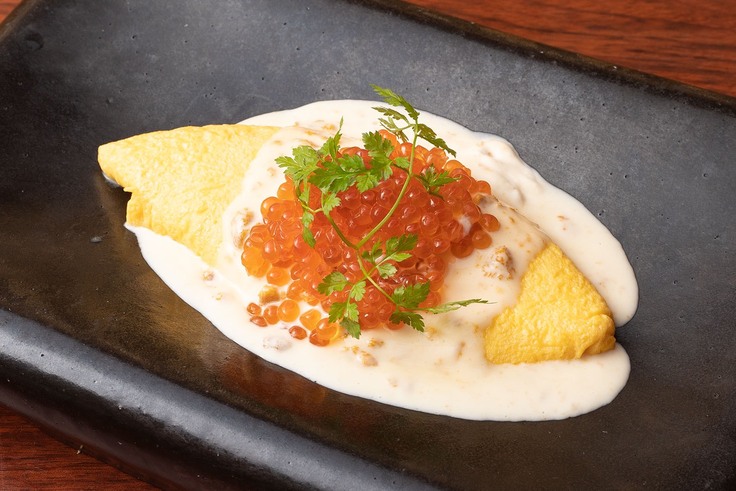 さらに 生ウニソースのオムレツ(いくらトッピング)1個追加でご提供