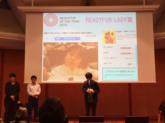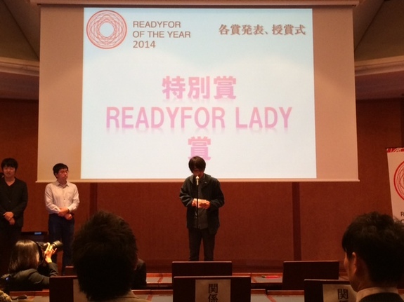 昨日、「READYFOR OF THE YEAR 2014」が東京大学で開催され、私たちのプロジェクトが、おかげさまで、「特別賞 READYFOR LADY賞」を受賞しました♫