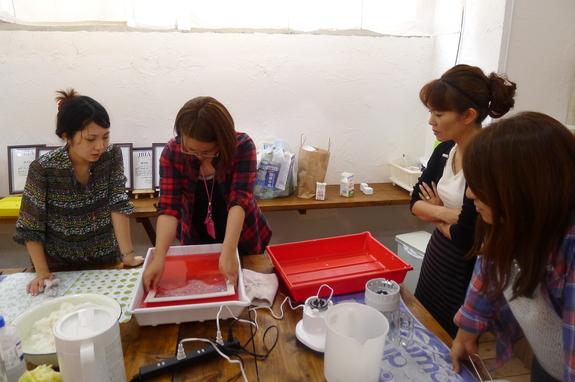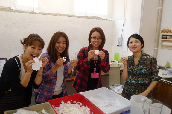 今日は、引換券のサンクスレターに使う台紙を、ものづくり担当サポーター上里エリカさんのレクチャーのもと、サポーターみんなでつくりました。