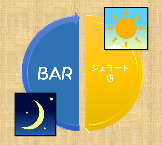 当然昼のジェラートをお買い求めになるお客様層と、夜にお酒を楽しみに来店されるお客様層は全く異なる客層になります。