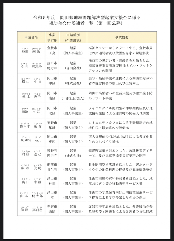 ここ、岡山県西大寺エリアから発信、出発し、全国内、全世界へ広がっていき