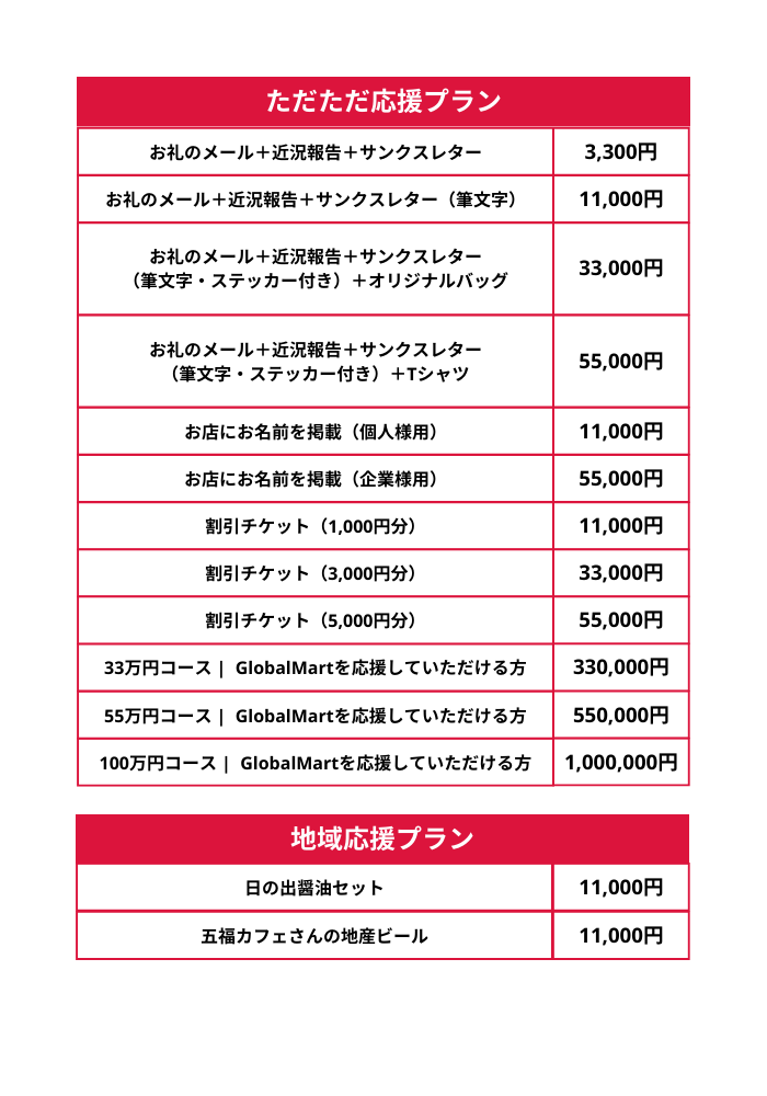 地域に『価値の残る』GLOBAL MARTさんの取り組みにご協力・ご支援お願い申し上げます。