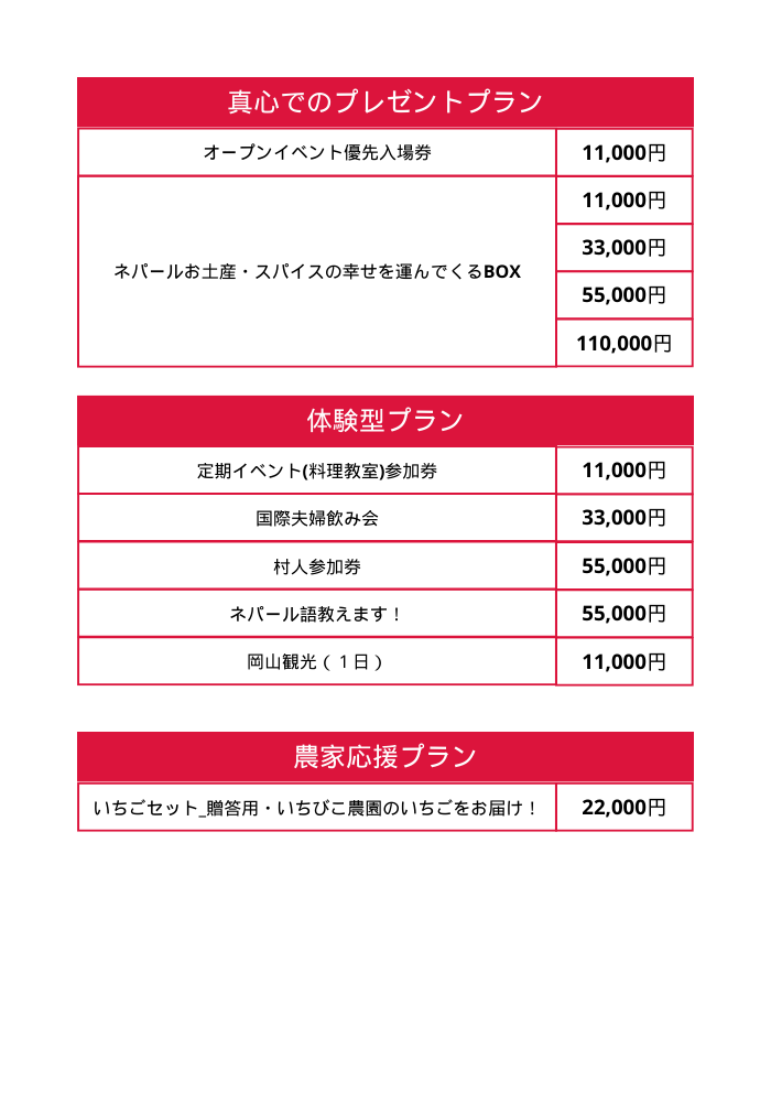 主に、ネパールからこだわり抜いた食材を直接輸入する際のかかるコストに大切に使わせていただきます。