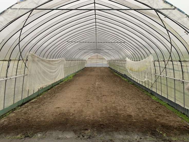 畝を立てる(白黒マルチを貼って、雑草の防除と地温を高める)