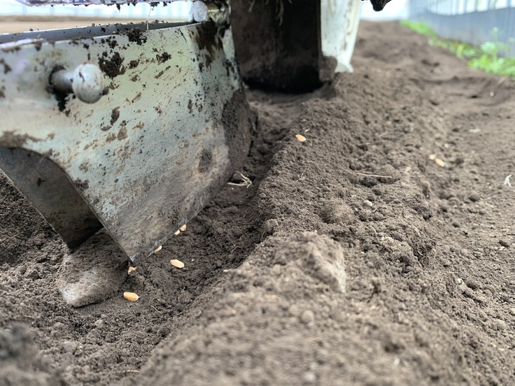 麦を蒔くと、麦の根が地下1m深くまで届き、人の手が届かないところまで耕してくれて、空気の通りや水の流れやすい環境が整うため、最低2年間蒔きます。