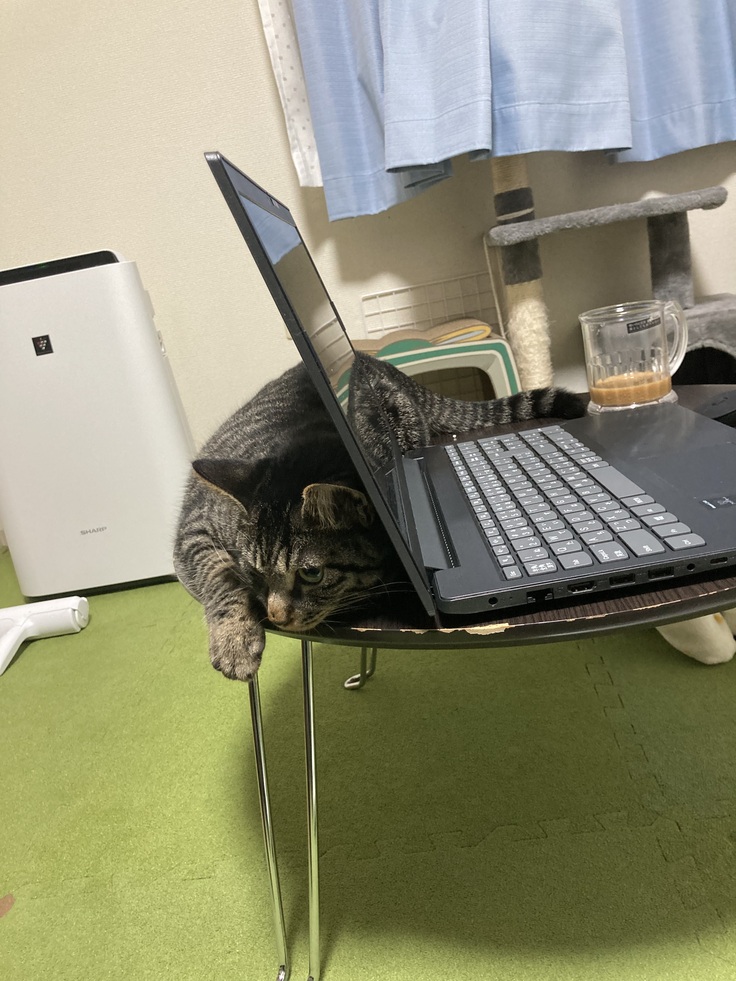 コロナ禍でのオンライン授業中に隙間に入りこむグミ