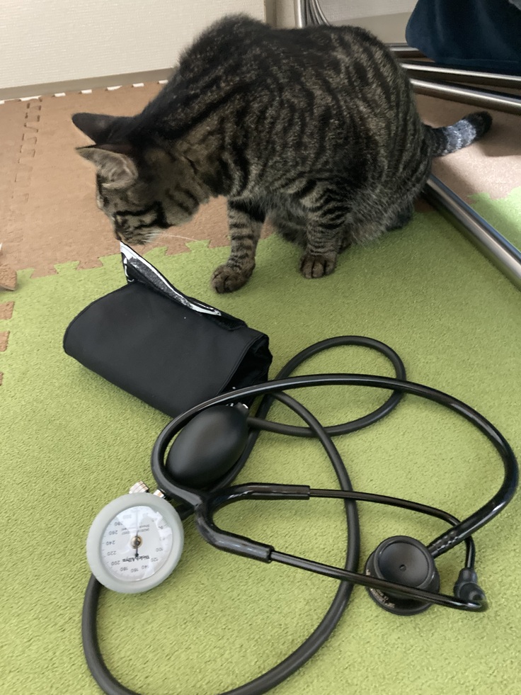 エムが看護学生なため聴診器、血圧計で遊ぶグミです。