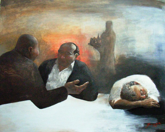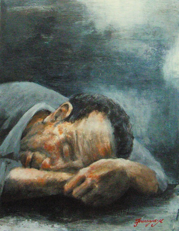 そんな中で祖父が串焼き屋を営んでいた関係で幼い頃より身近な存在だった酔っ払いに着眼しました。人間の素直な姿が現れやすい酔っ払いに制作テーマである、人の思いの在り処を探しております。