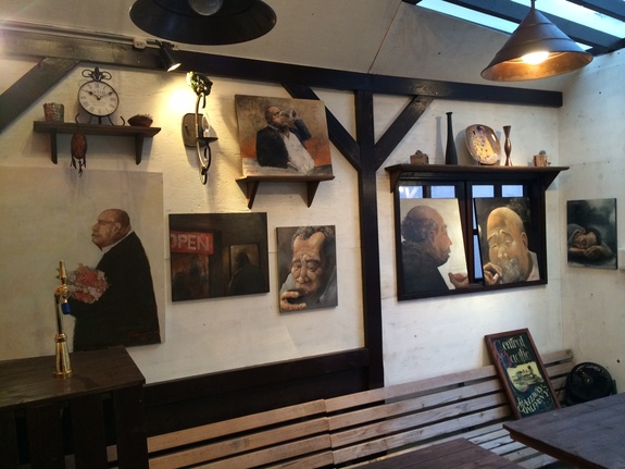 アルコールメインの飲食店なため酒場でのひとコマを切り取ったような作品を中心に展示しています)