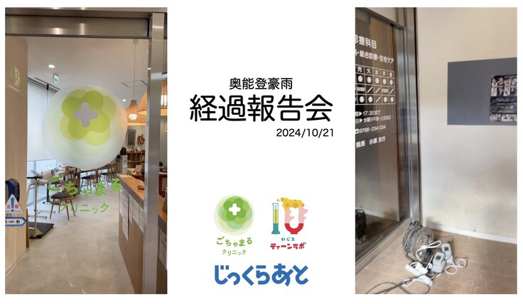 奥能登豪雨から1ヶ月を迎えた10月21日。ごちゃまるクリニック・NPO法人じっくらあとの共同で「奥能登豪雨経過報告会」を開催しました。150名の方々にお申し込みいただきました。