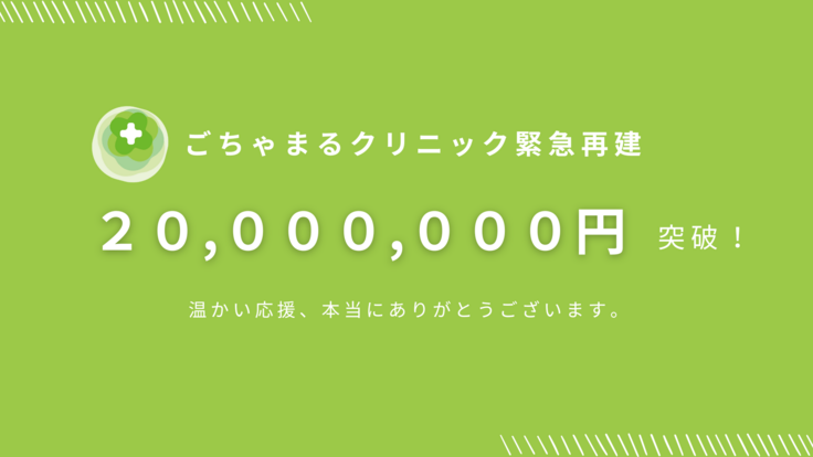 【残り6日】となりました「ごちゃまるクリニック『緊急再建』」クラウドファンディング、本日10月30日に2,000万円を達成することができました。