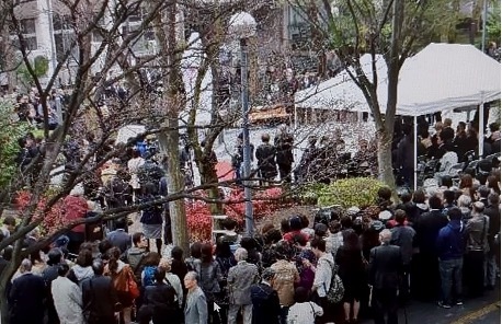 五代友厚銅像完成記念行事/銅像除幕式会場にはたくさんの方々が集まりました