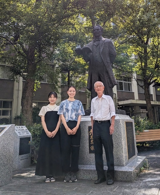 7月、私たちは起業部の活動中に、大阪市立大学同窓会(以下、市大同窓会)の方に今回の本の出版についてお話を伺う機会がありました。そこで、五代友厚が大阪商業講習所(後の大阪市立大学)を設立したこと、私たちが通う杉本キャンパスに立つ銅像はその五代であること、五代が当時の誤報により濡れ衣を着せられていたことを知りました。私たちが通う大阪公立大学は、2年前に大阪市立大学と大阪府立大学が統合されてできたので、五代友厚が身近に感じられ、プロジェクトに興味を持ちました。