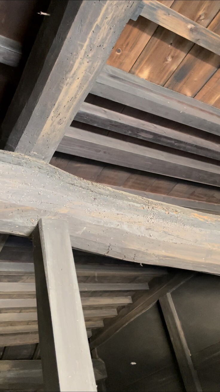 黒い木の柱(梁)を見ると何か動いているモノが見えました