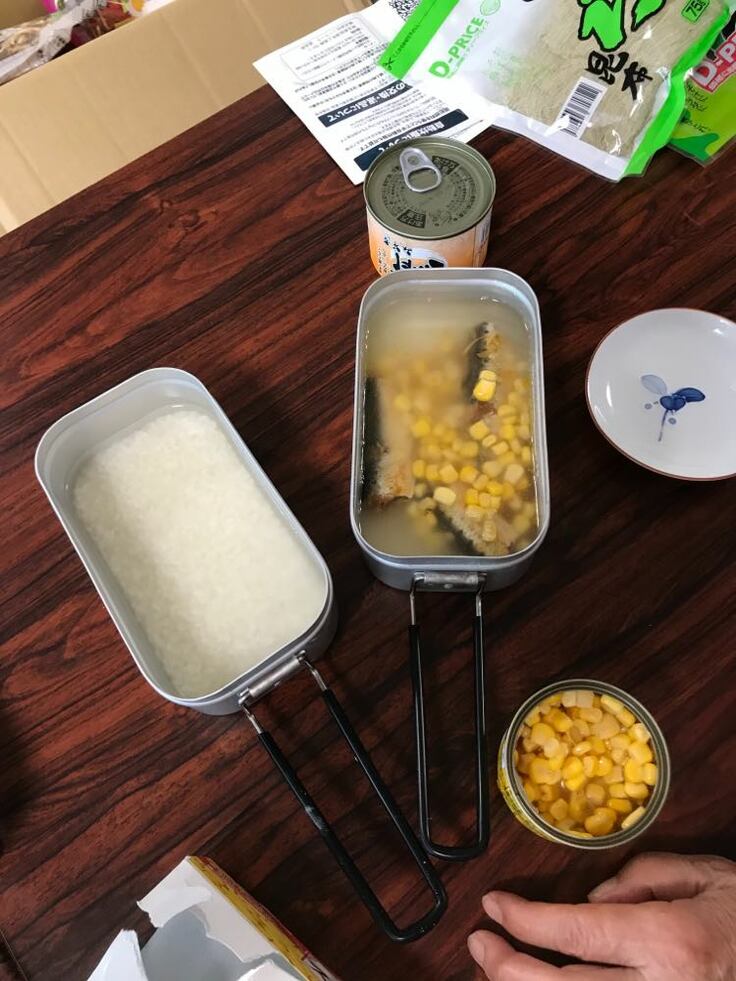 そして、14日にはせっかく避難するならメスティンでご飯を炊いてみようと、地域の方とアパートの住民でプチ避難を行いました。