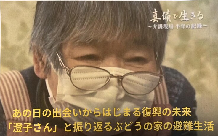 自宅(被災)⇒避難所(町外)⇒避難所(ぶどうの家と一緒に公民館)⇒仮設事業所⇒ぶどうの家(再建後)⇒サツキアパート⇒自宅