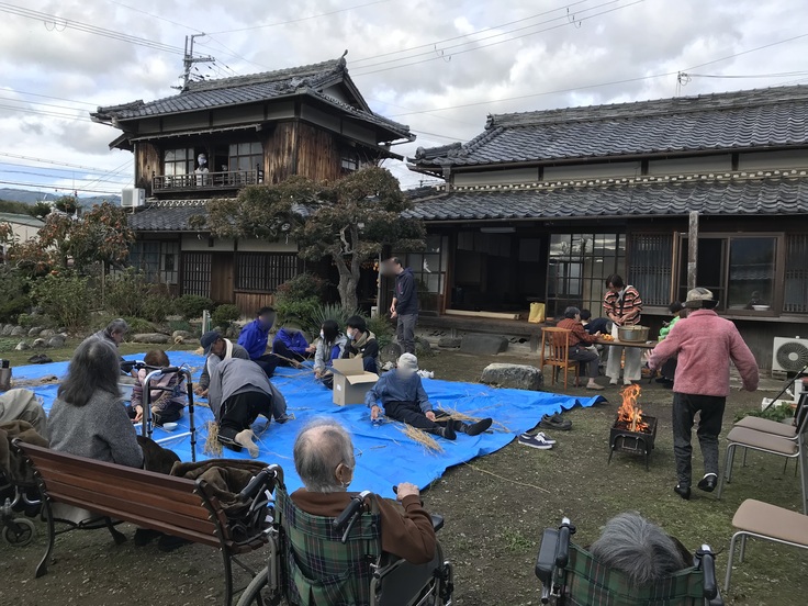 祥水園から来てくれたお年寄りたちは、しめ縄と聞いて、昔取った杵柄とばかりに本領を発揮する方もおられました。