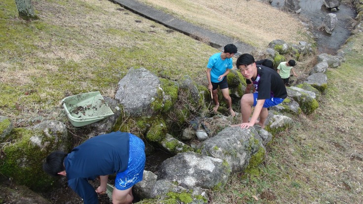 池の中の泥をかき出しているところ(鈴木、古澤)
