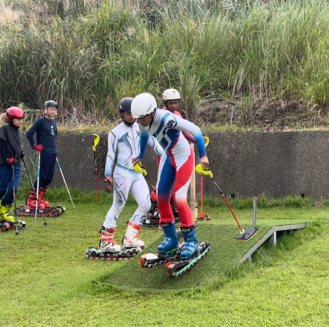 南国宮崎ということもあり、冬のシーズンの練習は短いですが、夏場も筋力トレーニングや体幹トレーニング、インラインスケートやグラススキーで練習を積んでいます。