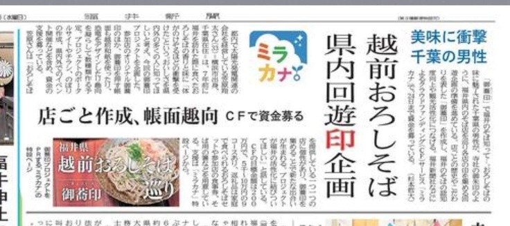 本日(10月12日)の福井新聞朝刊で御蕎印(ごきょういん)プロジェクトが掲載されました!✨✨