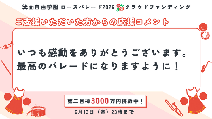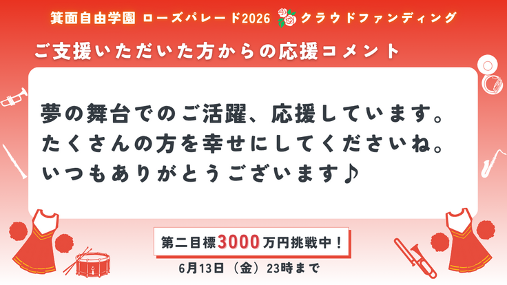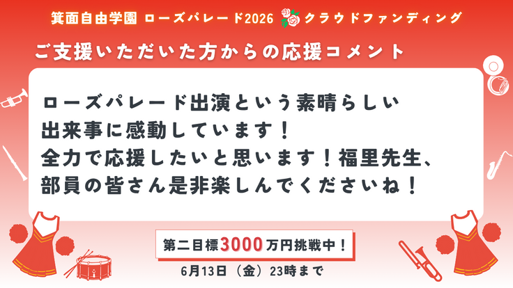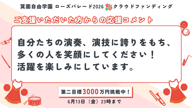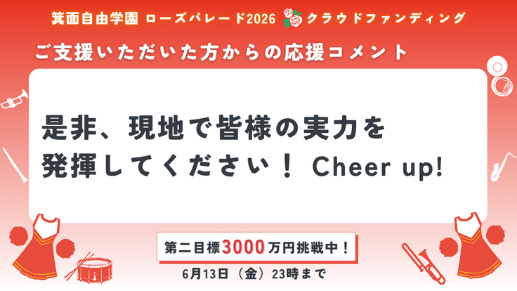 ■資金使途:箕面自由学園高等学校 吹奏楽部・チアリーダー部のローズパレード2026出場遠征費の一部