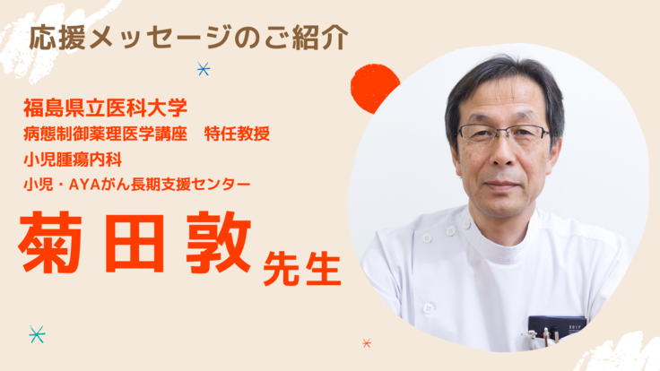 今回は、福島県立医科大学 の菊田敦先生からいただいた応援メッセージをご紹介します。