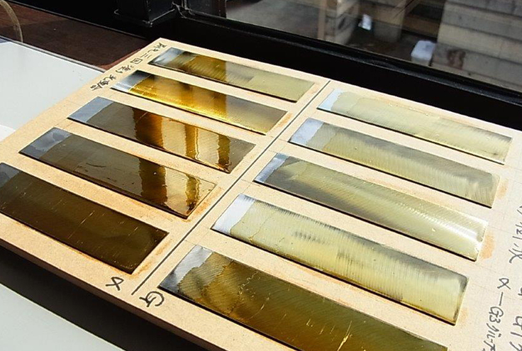 平安時代までに身分の高い方々だけが使用していたであろうこの塗料は、光沢のある琥珀色で当時では神秘的に見えた塗料であったといえます。延喜式や東大寺献物帳に多くの記載を見ることができます。
