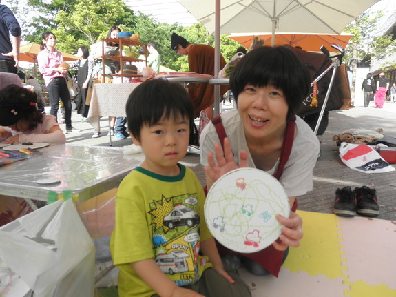 中野セントラルパークで開催されたナカノキッズ2015。様々な企業や団体が飲食販売やワークショップなどをされている中、ぐーぐーらいぶは「乳幼児から参加できるワークショップ」をテーマに、羊毛でつくる「ほわほわボール」と「ダンボールフリスビー」のワークショップを行いました。
