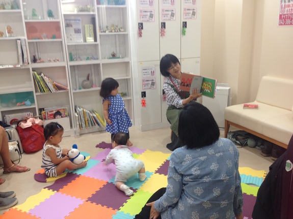 子ども達は元気に動き回りながらも、時折絵本に魅入ったり、おはなしに反応したり、のびのびとした時間となりました。