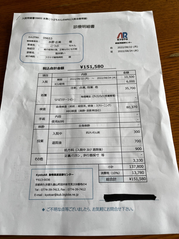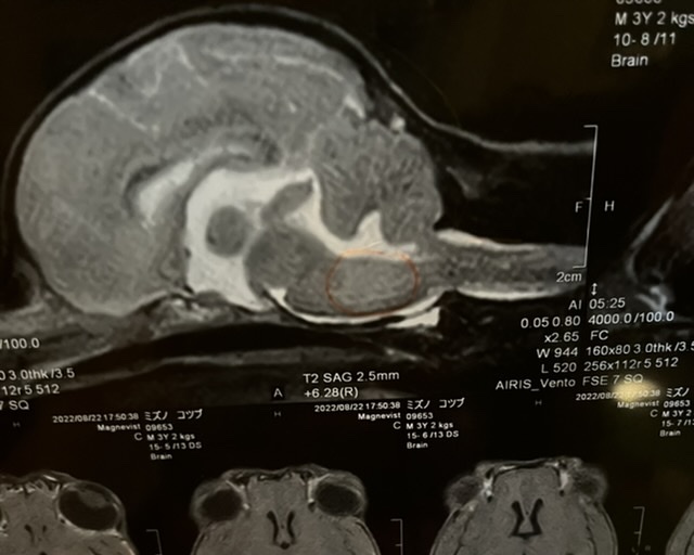 日に日にこつぶの様子がおかしく歩けているが足はフラフラ、寝ている事が多くなってきたため再受診、先生からMRI検査ができる病院に行くように言われ紹介してもらったのですが、滋賀県にある病院ではMRI検査ができる病院が1件のため予約の電話をしましたが直近で予約はできませんでした。
