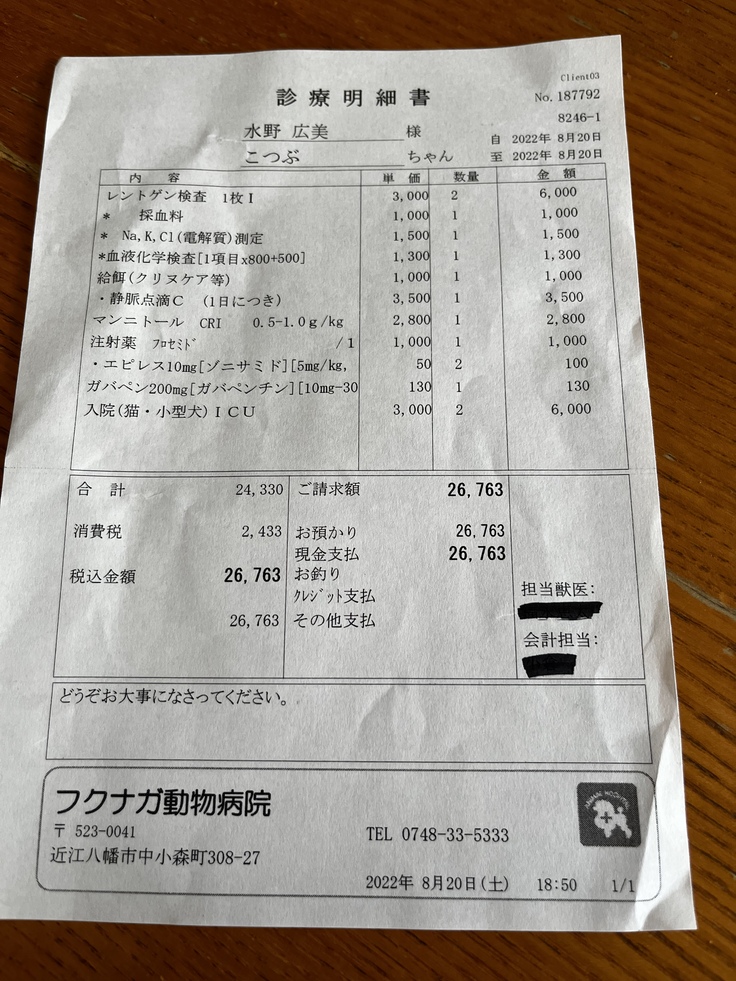 帰りの車で何で急に、こつぶがこんな病気になってしまったのか色々考えながら帰ってきました。あのときの対応があかんかったんかなとか、後悔ばっかりでなかなか受け入れができていない状態でした。