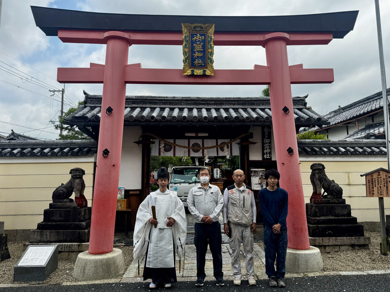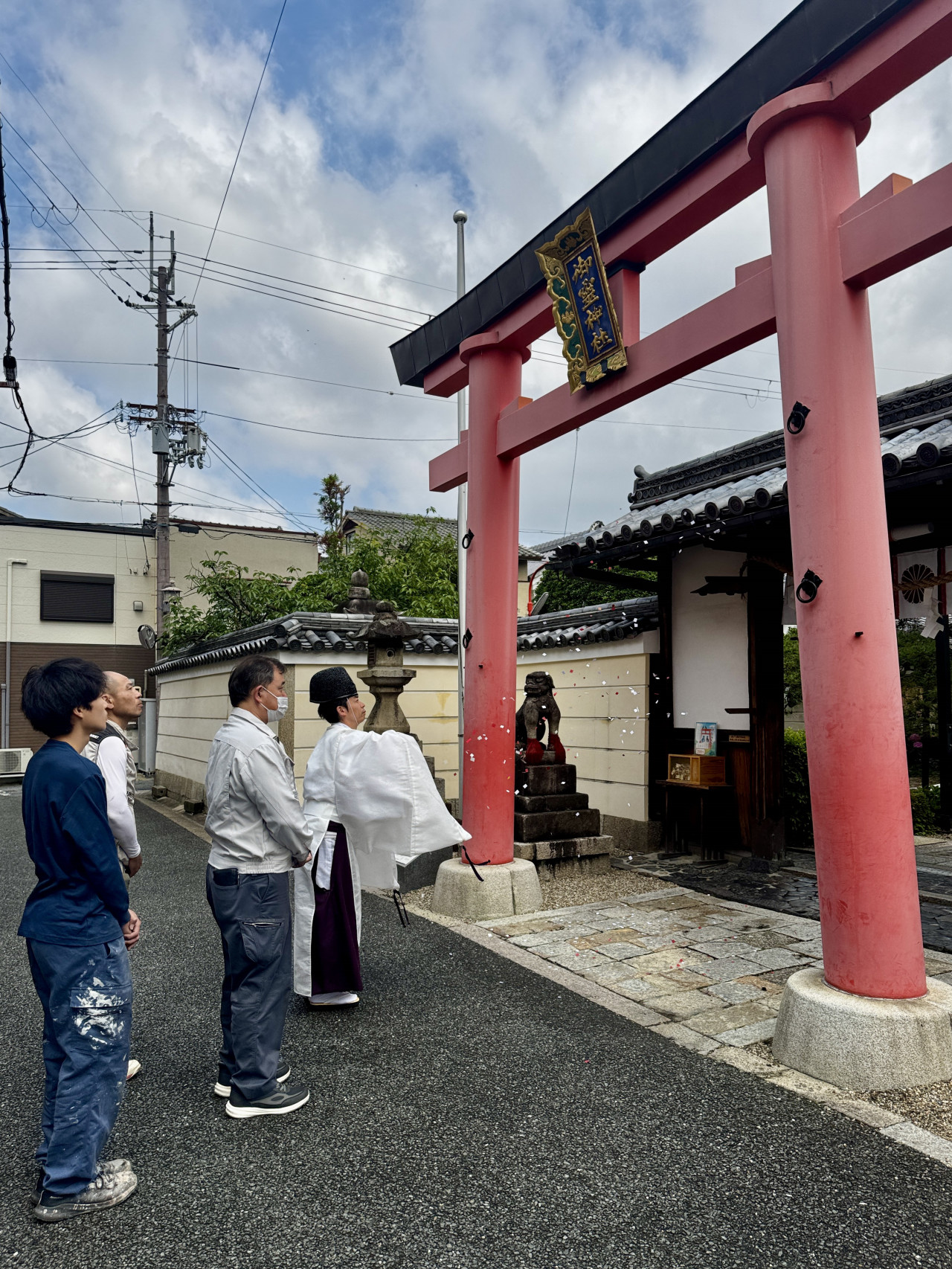 着工に先立ち、施工を担当される三宅塗装店の皆様にご参列いただき、工事の安全と無事完成を祈願する工事安全祈願祭を執り行いました。