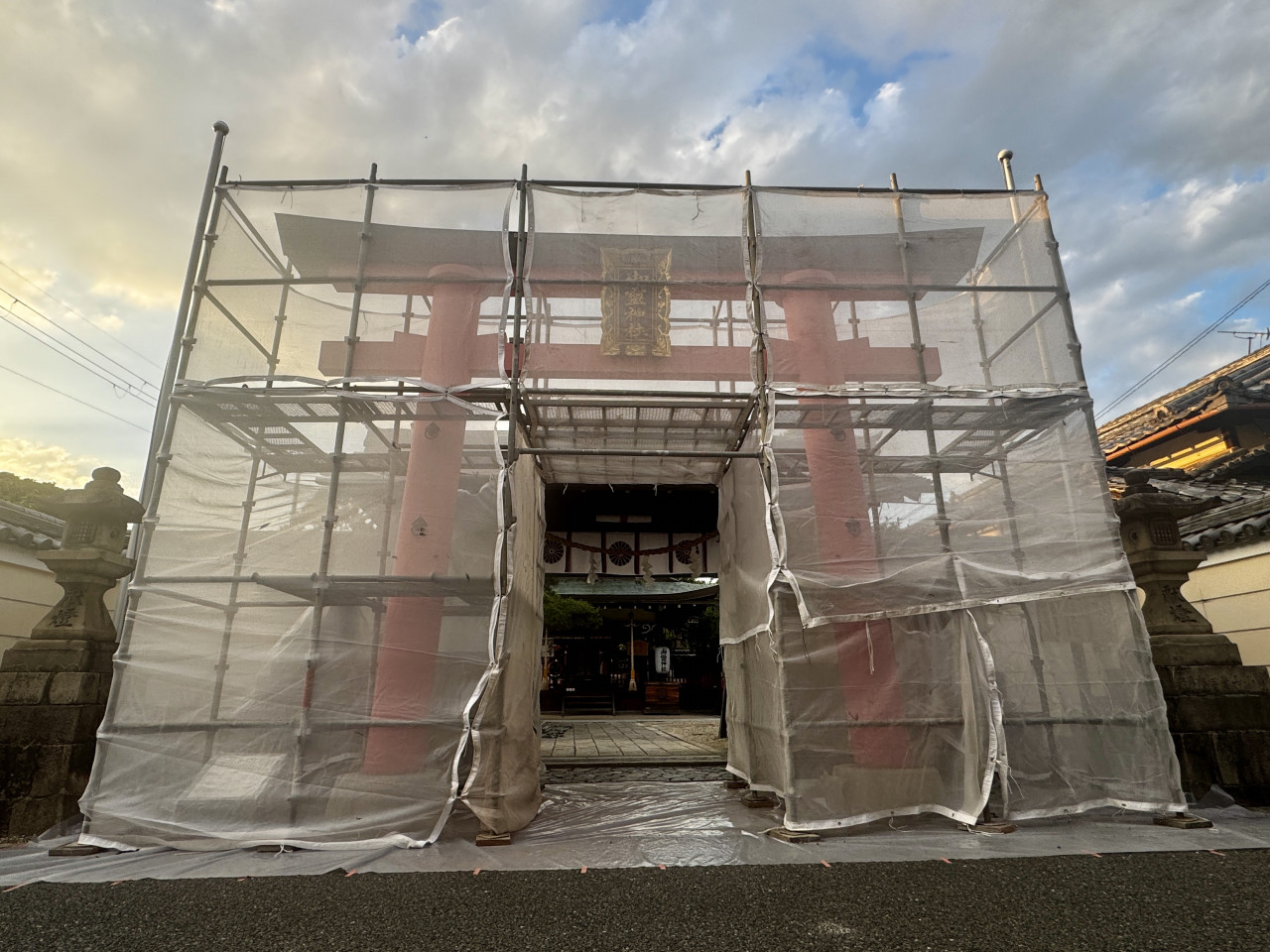 現在、工事に伴い鳥居の周辺に足場を設置しておりますので、ご参拝の際はどうぞ足元にお気をつけください。工事が無事に終わりましたら、あらためてご報告させていただきます。