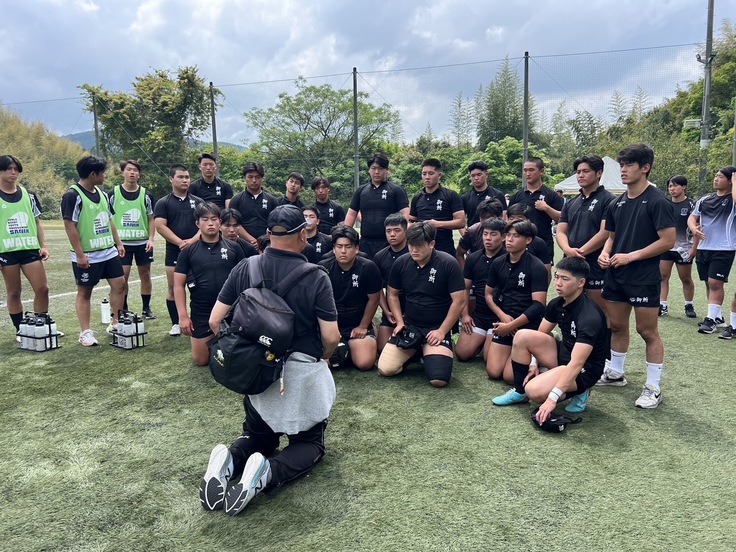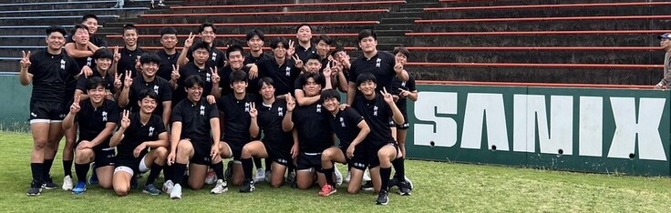 皆さんのご支援を受けて御所実ラグビー部は、福岡県で開催されている『サニックスワールドユース交流大会2024』に出場中です。この大会は、世界各国から集まった強豪校と切磋琢磨しながらも交流するという国際大会です。しっかりと経験を積んで、全国大会での優勝に向け頑張ってほしいと思います。皆様引き続き応援お願いいたします。