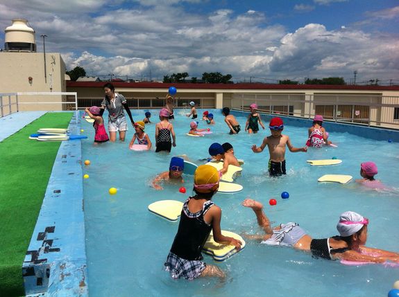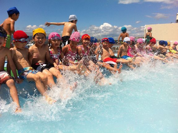 8月7日(火)柴宮幼稚園の屋上プールで行われたプール開きの様子です!