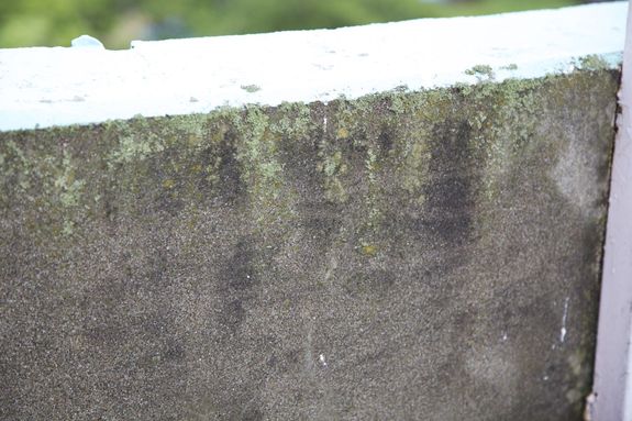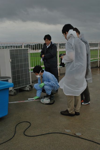 屋上のはじっこのコンクリートの立ち上がっている部分(写真の部分です)の線量が高いことにスタッフが気づきました。