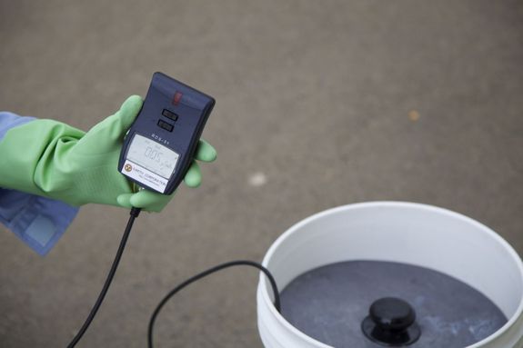 今はまだからっぽのこの遮蔽バケツに、センサーを入れて計測してみると・・・