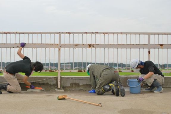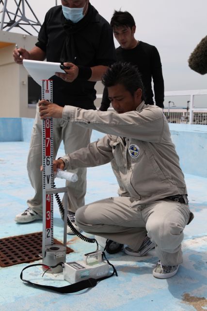 元々の予定では、7月11日と12日の二日間で除染をする予定だったのですが、12日の最後に、やや線量が高い箇所(壁にへばりついた藻や、浸食されている部分)が見つかり、延長して作業することになりました。