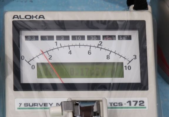 ちなみに表面線量とは、その物質だけが発している線量のこと。周りからの影響を防ぐため、鉛でセンサーの周りを囲って計測します。
