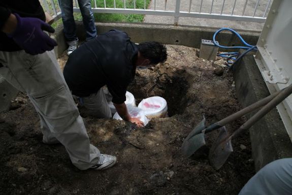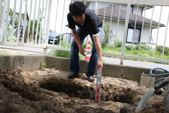 埋めた後が0.47マイクロシーベルトでした。(写真は埋めた後)