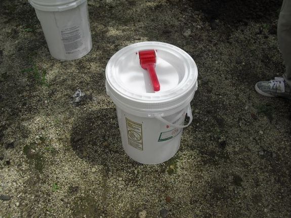 穴に入れた状態での、バケツ天面から地表までの距離は、30cm〜40cmぐらいです。